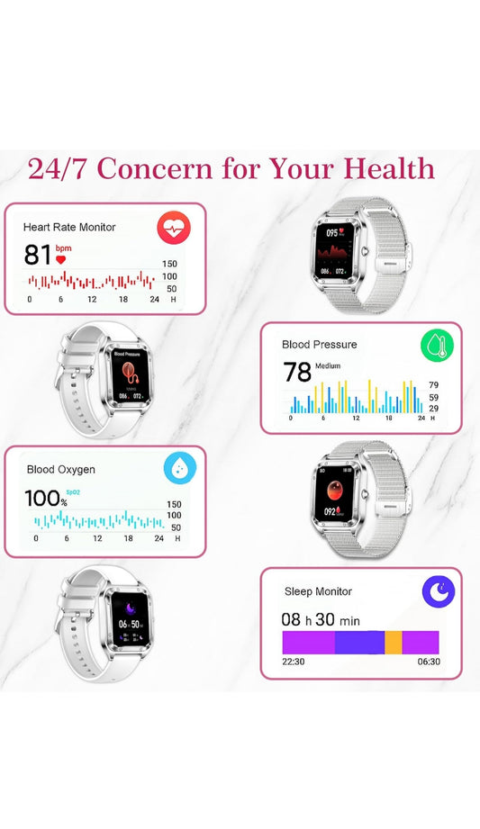 Betatree Damen Smartwatch, 1,6 Zoll Smartwatch mit Bluetooth-Anrufen, Fitness-Tracker mit 19 Sportmodi, Herzfrequenz, Schlafmonitor, Schrittzähler, wasserdichte Sportuhr für iOS Android Silver