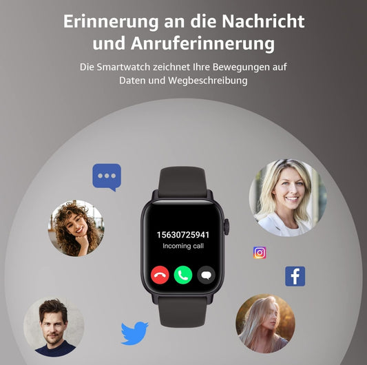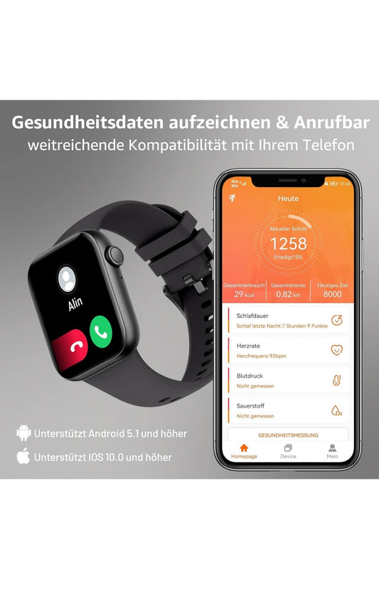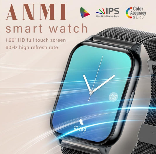 ANMI-Smartwatch für Herren und Damen mit Bluetooth-Anruf, 1,96 Zoll große Sport-Smartwatch mit Herzfrequenzmesser/Blutdruck/SpO2/Schrittzähler/Ton, Smartwatch für Android iOS
