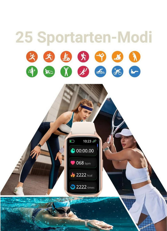 ASWEE Smartwatch Frauen Männer Kinder Fitness-Uhr mit 1,95 Zoll TFT Touchscreen Smart Watch, IP68 wasserdichte Fitness-Tracker mit Pedometer Herzfrequenzmesser Blutdruckmessgerät Stoppuhr für